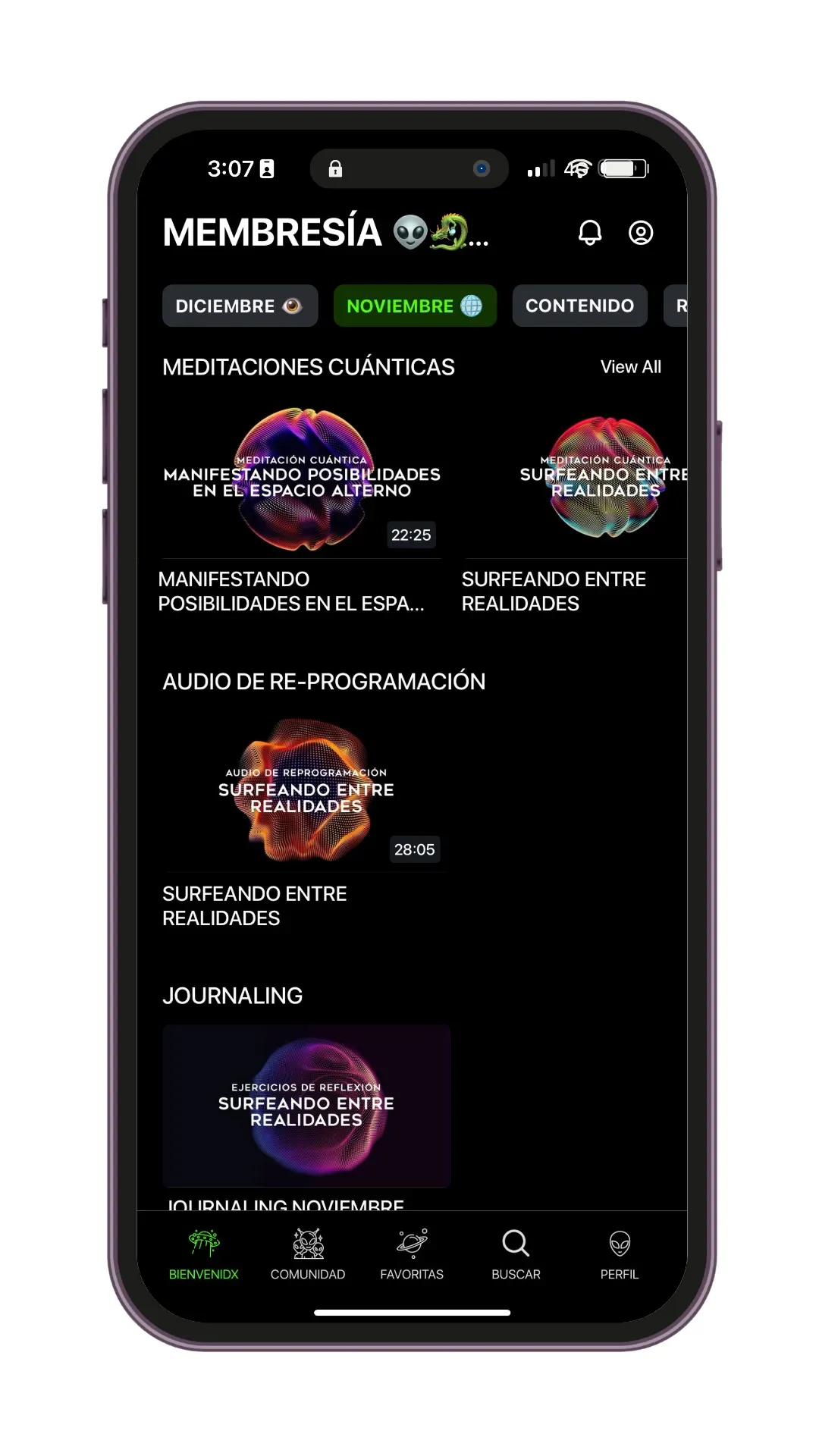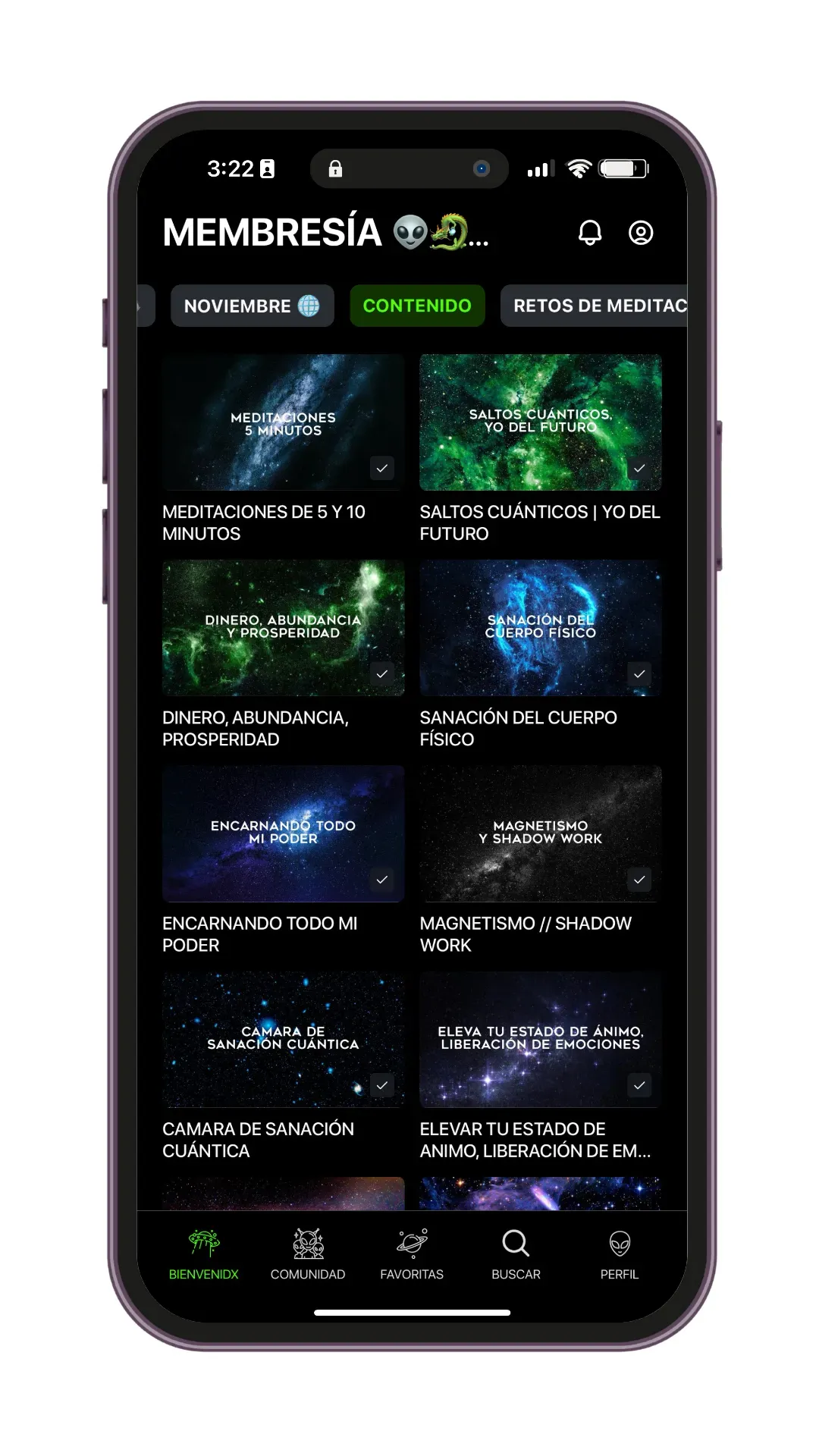 Las meditaciones, activaciones y herramientas energéticas no sustituyen asesoramiento médico, psicológico, psiquiátrico, legal o financiero profesional. Los resultados pueden variar según cada persona. La práctica constante, el compromiso personal y el proceso individual influyen en la experiencia de cada miembro.